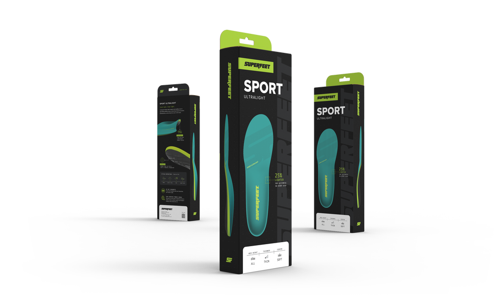 The Superfeet Sport Ultralight Insoles are purpose-built to provide lightweight yet durable foot support in extremely tight-fitting footwear such as minimalist running shoes, soccer and football cleats, and cycling shoes. Offering both cushioning and shock absorption via the SuperRev™ foam body as well as integrated heel and arch support via the EVOLyte® carbon fiber support, this insole is ideal for runners and athletes who want excellent support and comfort while ensuring a low-profile fit.